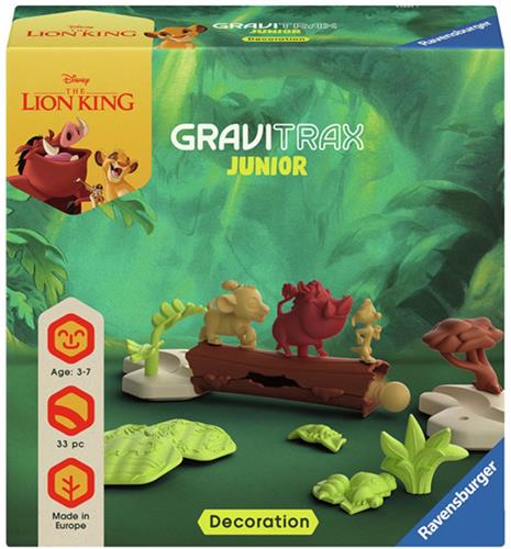 Met de GraviTrax® Junior Disney The Lion King uitbreidingsset kunnen kinderen hun GraviTrax® knikkerbaan uitbreiden en een nieuwe dimensie toevoegen aan hun speelervaring. De set bevat kleurrijke onderdelen met een Lion King thema, waardoor kinderen kunnen genieten van het bouwen en spelen met hun favoriete personages.