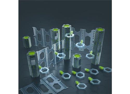 De set bevat 33 onderdelen, waaronder 12 pijlers (8 dichte, 4 tunnels), 2 lange doorzichtige muren, 3 middelgrote doorzichtige muren, en 16 klassieke balkons. Alleen te gebruiken in combinatie met een GraviTrax® Starter Set. Geschikt voor kinderen vanaf 8 jaar.