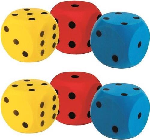 Met deze grote foam dobbelsteen set van 6 stuks (16 x 16 cm) kunnen kinderen eindeloos plezier hebben. De dobbelstenen zijn gemaakt van foam en hebben een opdruk van stippen. De set bestaat uit twee sets van drie stuks in de kleuren geel, rood en blauw. Elke dobbelsteen heeft 6 vlakken en is geschikt voor diverse doeleinden.