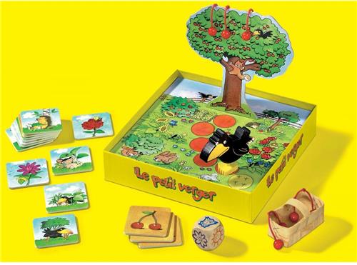 Pluk sappige kersen en wees op je hoede voor de brutale raaf in het Haba Kinderspel Le Petit Verger. Met dit behendigheidsspel kunnen kinderen de vruchten snel oogsten in een speelduur van 10 minuten. Het spel is geschikt voor 1-4 spelers in de leeftijdscategorie van 3-8 jaar. De taal op de verpakking en de handleiding is Frans, maar de handleiding is ook beschikbaar in het Nederlands, Duits, Engels, Spaans en Italiaans.