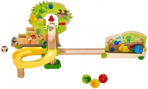 De Haba Knikkerbaan Kullerbü Boomgaard Junior van hout is een 17-delig bouwpakket dat garant staat voor uren speelplezier. De knikkerbaan is in de kleuren beige en groen en gemaakt van hoogwaardig hout. De aanbevolen minimum leeftijd voor dit speelgoed is 12 jaar, maar eigenlijk is het geschikt voor kinderen van alle leeftijden tot wel 100 jaar!