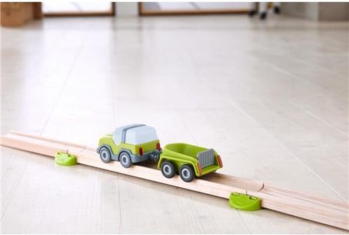 HABA Kullerbü Knikkerbaan - Terreinwagen met aanhanger