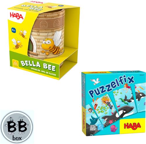 Deze set bestaat uit 2 (mini) spellen van Haba. Altijd handig om zo'n spelletjes in huis te hebben. Er zijn er die ze opzij houden voor als er een (onverwacht) feestje is, of iemand op bezoek komt of als je ergens op bezoek gaat en er is een peuter bij. Dat je dan een leuke kleine verrassing kan meenemen om te geven. Ook voor eigen gebruik natuurlijk leuk; Dit zijn spelletjes die tussen de 10 en 20 minuten duren. Dus als je kind 's avonds zegt voor het slapen gaan, dan kan je nog even een spelletje van deze nemen. Ook zijn ze handig om in je handtas te steken zodat je altijd een spel bij hebt, als het wat lang duurt bij de dokter, als je ergens op bezoek gaat, op restaurant, ... . Haba spellen zijn zo gemaakt dat kinderen er altijd iets uit leren zonder dat ze het doorhebben dat ze aan het leren zijn. Bv kleuren herkennen, tellen, dieren benoemen, ... Maar ook leert men om te concentreren, beurt af te wachten ( zonder al te lang te moeten wachten), ...... . Een klein spel, maar veel spelplezier, zowel voor jong als oud. Grote broer of zus kan meespelen, maar ouders en grootouders kunnen zich ook nog amuseren met deze spellen.