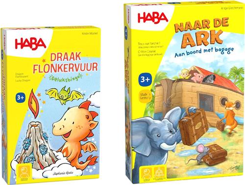 Haba Set van 2 spellen vanaf 3 jaar: Boomgaard Het memospel - Draak Flonkervuur Geluksbingo