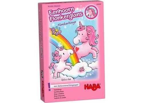 - Bij Spellenrijk kun je Haba spel Eenhoorn Flonkerglans Flonkerbingo kopen voor de prijs van € 12,95. Dit is vandaag de goedkoopste webshop.