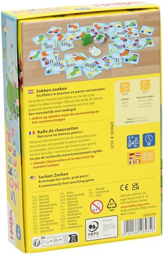 Met het Sokken zoeken bordspel van HABA wordt het zoeken naar sokken een spannend en hilarisch avontuur! Dit spel is perfect voor kinderen vanaf 4 jaar en zorgt voor urenlang speelplezier. Het doel van het spel is om zoveel mogelijk sokkenparen te verzamelen. Elke speler krijgt een waslijn met verschillende sokkenkaartjes. Om beurten draaien de spelers een kaartje om en proberen ze het bijpassende sokkenpaar te vinden. Maar pas op, want de sokken liggen niet altijd op de juiste plek! Soms moet je goed zoeken en je geheugen gebruiken om de juiste sokken te vinden. Het Sokken zoeken bordspel stimuleert het geheugen, de concentratie en het observatievermogen van kinderen. Daarnaast zorgt het spel voor veel plezier en interactie tussen spelers. Het spelbord en de kleurrijke sokkenkaartjes zorgen voor een vrolijke en aantrekkelijke uitstraling. Met het Sokken zoeken bordspel van HABA beleven kinderen een avontuurlijk en leerzaam spel waarbij ze hun sokkenkennis kunnen testen. Wie weet als eerste alle sokkenparen te vinden?
