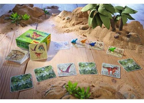 Met merk Haba's Dino's Op Het Spoor memoryspel gaan spelers op zoek naar dino's in het oerwoud. Bevat: 4 dinos in 4 kleuren, 26 zoekkaartjes, 5 dinokaartjes, 1 fopkaartje, 4 routekaartjes, en een handleiding met spelregels.