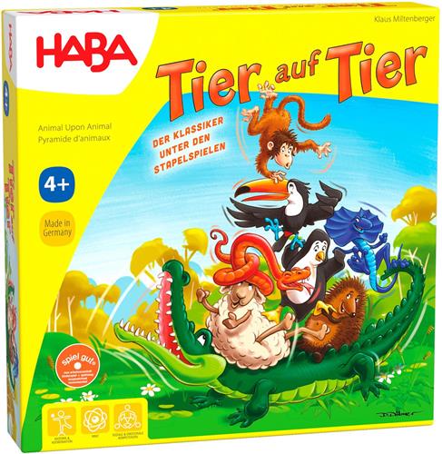 De HABA Dier op dier is een spannend en uitdagend spel waarbij de dieren hun kunstjes willen vertonen - de grote piramide! Het doel van het spel is om voorzichtig en behendig te werk te gaan en de dieren op elkaar te stapelen. Wie kan de pinguïn op de krokodil zetten, het schaap op de pinguïn en de slang op het schaap?