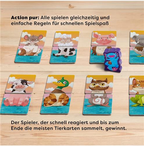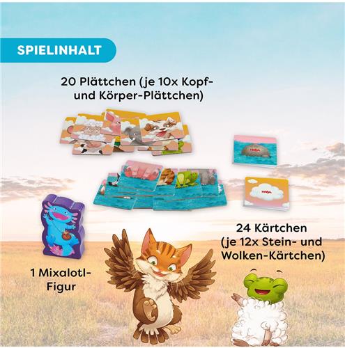 Maak kennis met de HABA Spiel Mixalotl, een spannend en educatief spel waarbij kinderen hun geheugen en luistervaardigheden kunnen trainen! Dit unieke spel daagt jonge spelers uit om de verwarrende geluiden van verschillende dieren te koppelen aan hun juiste afbeeldingen. Terwijl de hond "muh" maakt en de koe "mäh," is het aan de kinderen om de juiste kaarten om te draaien en de juiste geluiden te maken om het creatief gemixte Mixalotl te veroveren.