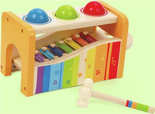 Deze unieke speelgoedset combineert een klassieke hamerbank met een xylofoon, waardoor kinderen op een leuke en creatieve manier muziek kunnen maken terwijl ze hun hand-oog coördinatie verbeteren. De felgekleurde hamerbank en xylofoon zijn gemaakt van hoogwaardig hout en zijn veilig voor kinderen om mee te spelen.