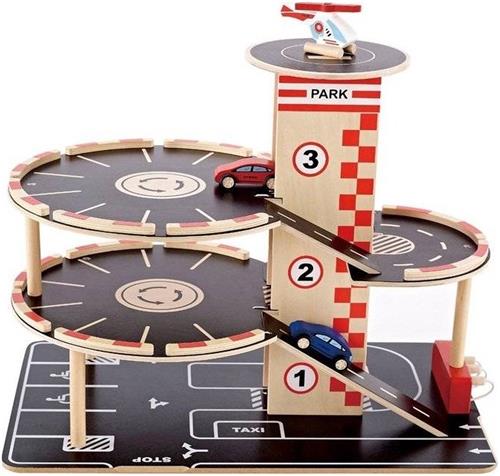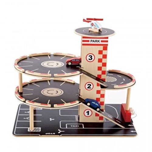 Met de Hape Houten speelgoed garage kunnen kinderen urenlang speelplezier beleven. Deze garage heeft drie etages, een helikopterplatform, en wordt geleverd met twee autootjes en een helikopter. Met vier parkeerdekken, een lift, en een benzinepomp zullen de kinderen zich helemaal kunnen uitleven. Luister naar de verhalen die je kind tijdens het spelen verzint en voeg verschillende auto's en poppetjes toe voor nog meer speelplezier.