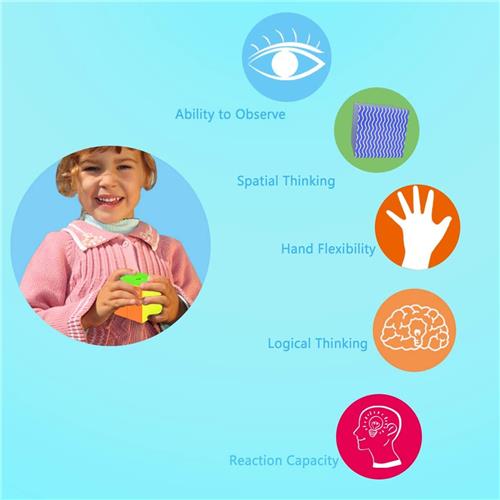 De cubes bieden verschillende speleigenschappen. Probeer elke zijde van de kubus dezelfde kleur te geven en geniet van 100 minuten speeltijd. Dit denkspel, educatieve spel en behendigheidsspel kan gespeeld worden in het Nederlands met een universele handleiding. De verpakkingsinhoud bestaat uit een blister met de 3 cubes.