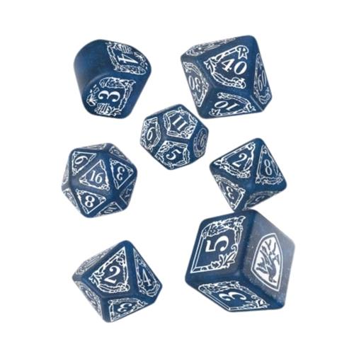 Deze set bestaat uit 7 dobbelstenen: Moderne D4, D6, D8, D10, D12, D20 en D100. De kleurvariatie voor deze dobbelstenenset is een glinsterende blauwe achtergrond en witte gravures. Het basismateriaal van de dobbelstenen is vermengd met glitterstof, waardoor het een betoverende uitstraling krijgt. Frames rondom de cijfers op elke dobbelsteen zitten vol met details die verwijzen naar huis Ravenklauw en de Harry Potter-serie.
