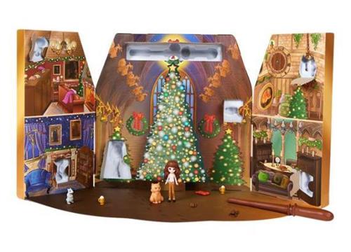 De adventskalender biedt niet alleen een toverstok, maar ook drie schattige 7,6 cm grote Magical Minis-figuren van populaire personages: Harry Potter, Ron Wemel in zijn gestreepte pyjama en de liefdevolle Hermelien Griffel in een roze sweater. Daarnaast bevat de set meer dan 20 accessoires, waaronder prachtige kersttruien en unieke items zoals Hedwig, de sorteerhoed, en de onzichtbaarheidsmantel.