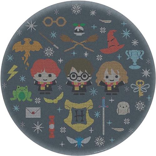 Harry Potter, Ronde Puzzel 500 stukjes Kerst in Zweinstein 50cm met Decoratieve Doos, Veelkleurig