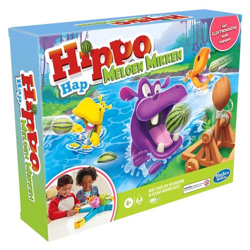 Het Hippo Hap-ballenspel is een spel vol razendsnelle happen waarbij spelers plastic watermeloenen in de mond van hun nijlpaard schieten. De gemotoriseerde speleenheid doet de mond van de nijlpaarden open en dicht klappen terwijl de spelers zoveel mogelijk watermeloenen raak schieten. Kinderen vinden het leuk om de meloenen met een druk op de knop weg te schieten en te zien hoe elke opgeslokte watermeloen weer naar het scorevak rolt. Net zoals het klassieke Hippo Hap-spel is deze elektronische versie geschikt voor jongens en meisjes vanaf 4 jaar. Perfect voor regenachtige dagen, een speelafspraakje of een speelavond met familie.