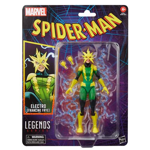 - Bij Superzero kun je Hasbro Spider-Man Marvel Legends Retro Action Figure Electro (Francine Frye) 15 cm Action Figuur kopen voor de prijs van € 24,00. Dit is vandaag de goedkoopste webshop.