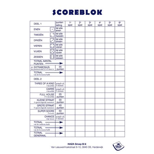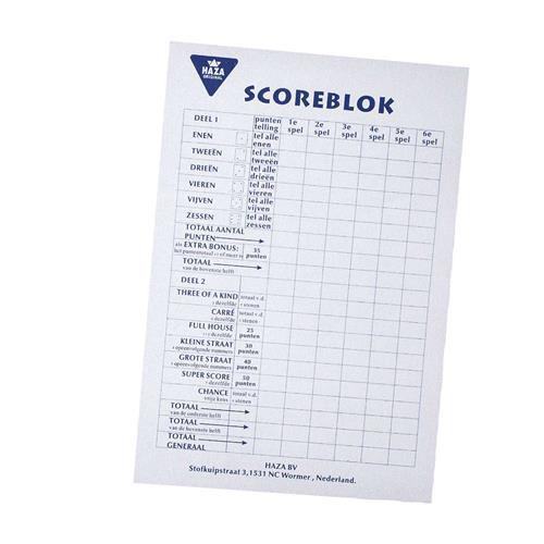- Bij Fietsenwinkel be kun je Haza Original Scoreblok Yahtzee 50 Vel kopen voor de prijs van € 8,99. Dit is vandaag de goedkoopste webshop.