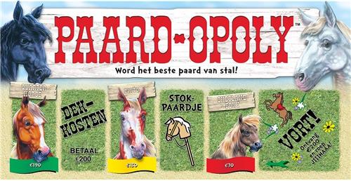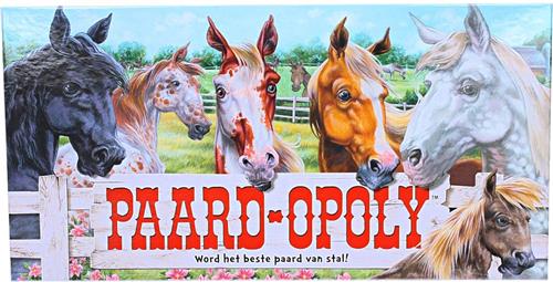 In Paard-opoly moet u het beste paard van stal worden! Het spel kent alle actie van een traditioneel vastgoedspel... maar dan in galop! Koop uw favoriete paarden, verzamel strobalen en verhandel ze voor stallen! Terwijl u speelt, draait u de eigendomsbewijzen om en ziet u interessante weetjes over elk paard! Wist u bijvoorbeeld dat... de shetlandpony een van de sterkste paarden ter wereld is, relatief aan zijn omvang? of dat er van het Friese paard aan het begin van de 19e eeuw nog maar drie hengsten waren en dat het ras bijna uitstierf? of dat de Percheron een trekrecord van 1500kilo over 4,5 meter heeft? Klinkt allemaal leuk, maar pas op dat u niet uit het zadel wordt geworpen, de hoefsmid moet betalen of naar de trailer wordt gestuurd! Dus pak uw houten zadel en ga naar VORT! Wie weet? Misschien draaft u door. Misschien krijgt u last van paardenvliegen. Wat er ook gebeurt, het beste paard van stal worden is iets wat u niet snel zult vergeten! Het spel kan gespeeld worden als standaard spel of versie van één uur. Met unieke houten speelstukken! Ook verkrijgbaar: Boer-opoly, Kat-opoly, Hond-opoly. Het bekendste gezelschapsspel van Nederland in een nieuw jasje! Koop je favoriete paarden, verzamel strobalen en verhandel ze voor stallen.