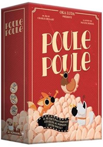 Poule Poule kaartspel. Kies eerst een speler als regisseur, de "Poule-poule Master" (PPM). De PPM daait een-voor-een de kaarten open in het midden van de tafel. Eenmaal geplaatst, vormen deze kaarten de Film. Ondertussen moeten de andere spelers alleen de eieren tellen! In het eerste spel bestaat het deck uit: 15 eieren, 10 kippen en 10 vossen.Je telde 5 eieren? Sla op de tafel en roep Poule-Poule! De speler die als eerste op de Film slaat als deze ten minste 5 eieren bevat, verdient 1 punt. Elk deel van een gekleurd ei vertegenwoordigt een punt. Een volgende ronde kan beginnen! De eerste speler die 3 punten verdient degene die als eerste een compleet gekleurd ei heeft wint het spel.Een speler is het hier niet mee eens? Vraag om een slow motion!Als een speler op de Film slaat, kunnen de andere spelers ermee instemmen, en op de spelers hand slaan, of niet slaan, als ze het er niet mee eens zijn. Alleen als ten minste een speler niet slaat, bekijken we de Film in slow motion. De PPM draait de Filmstapel om - zonder de volgorde te veranderen - en speelt daarna de Film opnieuw af, kaart-voor-kaart, te beginnen met de bovenste kaart (die als eerste gespeeld werd), maar ditmaal in slow motion ...Alle spelers die het niet eens zijn met de speler die als eerste sloeg: - verdienen 1 punt als ze gelijk hebben (na de slow motion blijken er minder dan 5 beschikbare Eieren te zijn), of - verliezen 1 punt als ze het fout hebben (er waren minimaal 5 Eieren beschikbaar).