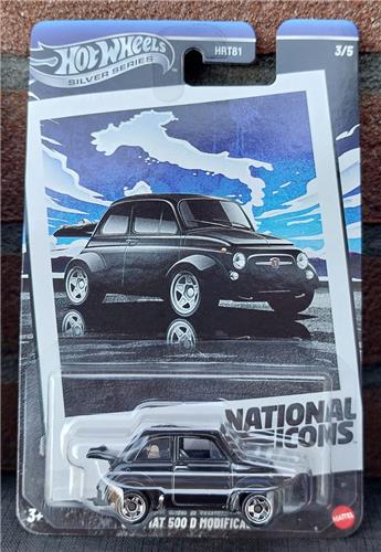 Hot Wheels 60's Fiat 500 D Modificado, National Icons JBY88 Schaal 1/64 Auto, 3 jaar, Metaal, Zwart