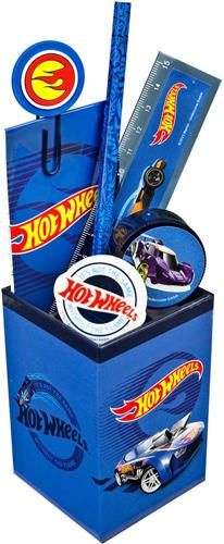 Met de Hot Wheels Bureauset van 7 delige set kunnen kinderen genieten van uren plezier en creativiteit. De set bevat een potlood, vormige gum, liniaal, puntenslijper, mini notitieblok (14,5 x 6 cm) en een grote paperclip met een speciale bovenkant, allemaal netjes georganiseerd in een stoere Hot Wheels bureauhouder met vakverdeling. Deze set is perfect voor kinderen die dol zijn op het iconische merk Hot Wheels en die graag hun bureau georganiseerd en leuk willen inrichten.