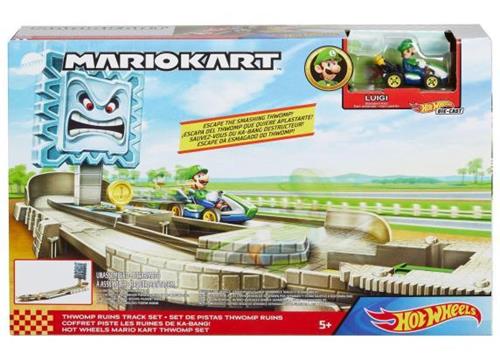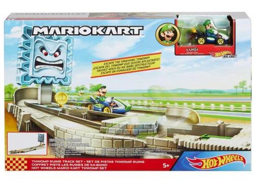 Met de Hot Wheels Mario Kart Nemesis Track Set Thwomp beleef je de spannendste races! Deze kleurrijke set van kunststof bevat een baan van 1 meter lang, perfect voor snelle actie en gave stunts. De baan heeft een schaal van 1:64 en is ontworpen met Super Mario thema, waardoor fans van de game zich helemaal kunnen uitleven.
