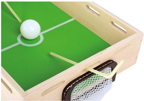 Wie kan de bal in het doel van de tegenstander leggen en een aanval 'omver blazen'? Door de rietjes correct te gebruiken door voorzichtig te blazen, kun je kleine kampioenschappen winnen. Deze stevige doos kan heel goed meegenomen worden, in de auto, in huis of buiten - iedereen wil er graag mee spelen!