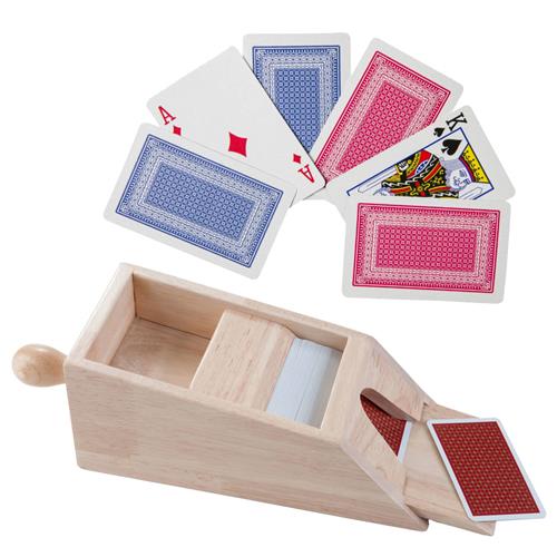 - Bij Bol.com kun je Houten Blackjack kaartgever/slof met handvat 28 x 11,5 x 9,5 cm inclusief 4x sets speelkaarten kopen voor de prijs van € 30,49. Dit is vandaag de goedkoopste webshop.