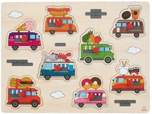 Houten knopjes/noppen speelgoed puzzel foodtruck thema 30 x 22 cm - Educatief speelgoed voor kinderen