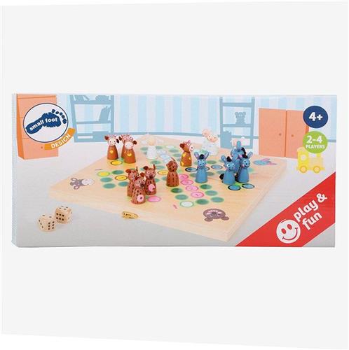 Boeee en mehhh! Vier verschillende houten boerderijdieren rennen in dit spel rond. Ze proberen allemaal als eerste hun huis te bereiken met behulp van de dobbelstenen. Door het spel te spelen, kunnen kinderen spelenderwijs hun cijfers leren en tegelijkertijd hun motoriek trainen. Speelplezier is hier voorgeprogrammeerd! De houten kist is eenvoudig af te sluiten met het clipslot, zodat hij klaar is voor de volgende gameronde. Houten Ludo waarbij het de bedoeling is om jouw boerderijdieren zo snel mogelijk op stal te krijgen.
