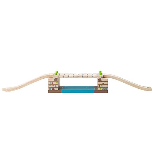 De Houten Rails - Ratelbrug is een ideale toevoeging aan je houten treinbaan set. Met een aanbevolen minimum leeftijd van 3 jaar en een aanbevolen maximum leeftijd van 6 jaar, is deze brug geschikt voor jonge kinderen om mee te spelen. De brug is gemaakt van hout en heeft een kwaliteitslabel CE. De afmetingen van de brug zijn 26 cm lang, 10 cm breed en 12 cm hoog, waardoor deze perfect past bij de rest van je treinbaan set.