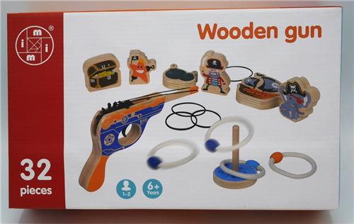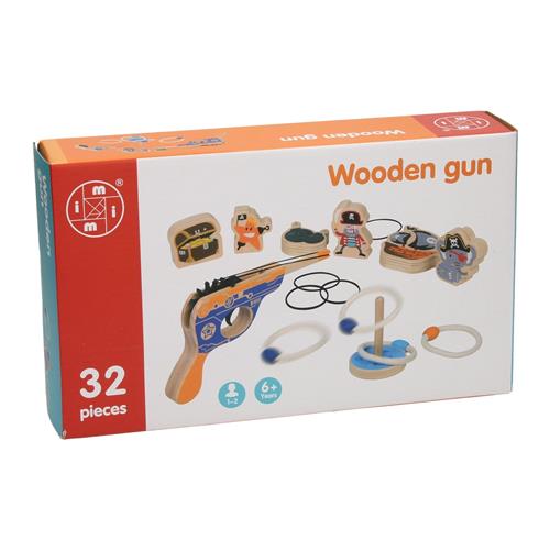- Bij Bol.com kun je Houten speelset 29x19cm + Gun 32 stuks kopen voor de prijs van € 11,75. Dit is vandaag de goedkoopste webshop.