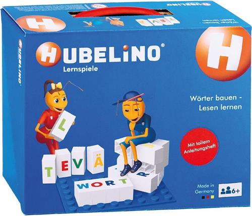 Met deze Hubelino blokken kun je op een leuke manier leren lezen. Een doos vol letters zodat je op een speelse wijze bezig bent met woorden. De set bevat 80 blokken met afbeeldingen en letters en 5 bouwplaten. De set bevat de Duitse letters: Ã?, Ã? en Ã?.