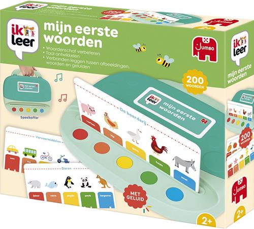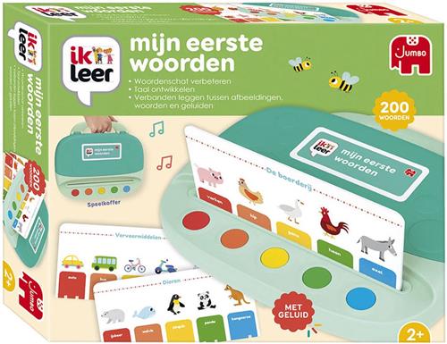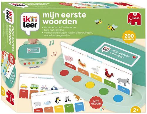'Ik leer mijn eerste woorden' is een educatief spel waarmee de jongste gezinsleden nieuwe woordjes leren, voorwerpen herkennen en dieren uit hun directe omgeving ontdekken. Elke kaart bevat de naam van het voorwerp of dier, een eenvoudige uitleg en, indien van toepassing, het bijbehorende geluid. Het spel helpt kinderen bij het verbeteren van hun spraak en het leggen van verbanden tussen woorden, voorwerpen, dieren en geluiden. Met in totaal 20 dubbelzijdige kaarten en een speelkoffer met geluiden is dit een leuke en leerzame activiteit voor kinderen vanaf 2 jaar.