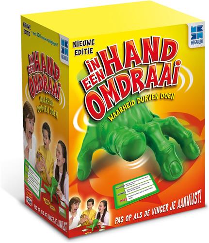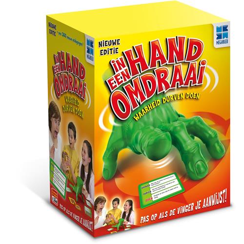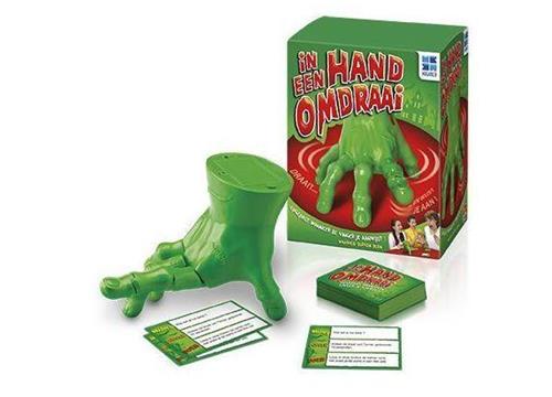 In een handomdraai, familiespel voor kinderen én volwassen. Gebaseerd op het bekende spel "Waarheid, Durven of Doen. De grappige hand verrast groot en klein. Pas op wanneer de vinger naar jou wijst! Spelletjes zoals deze zijn perfect om als cadeau te geven! Is dit spel wat voor jou?