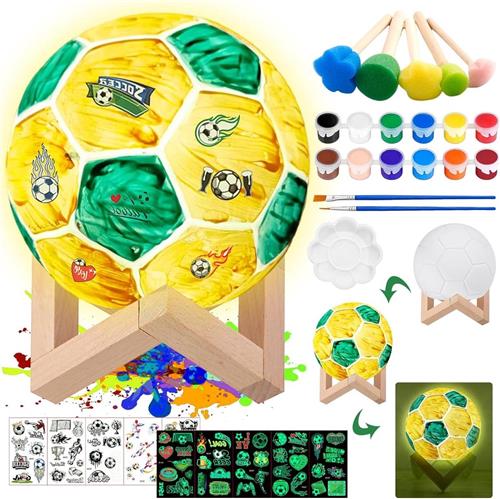 De set bevat alles wat je nodig hebt om aan de slag te gaan: een voetballamp, nachtlichtstandaard, sponsborstels, kleuren, lichtgevende stickers en zelfs voetbalstickers. Hiermee kunnen kinderen hun eigen artistieke creaties maken en hun slaapkamer omtoveren tot een fascinerende lichtshow. Het is niet alleen een leuk knutselproject, maar ook een educatieve ervaring!