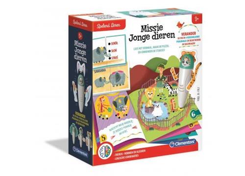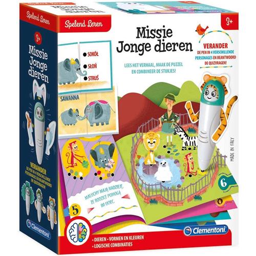 Een kit met een fantastisch verhaal om te lezen, leuke spelletjes om te spelen en spannende quizzen om op te lossen met de grappige elektronische pen! Het mooi geïllustreerde album staat vol met educatieve activiteiten gericht op vormen, kleuren en logische associaties op dierkenmerken. Lees het verhaal, maak de puzzel en combineer de stukjes. Met de antwoorddetectiepen kun je zelf je antwoorden controleren: elke keer dat het gegeven antwoord goed is, licht de pen op en maakt hij geluid! Met de gekleurde kartonnen accessoires kun je de pen in 4 grappige karakters veranderen.