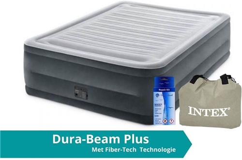 Intex Comfort Plush - Luchtbed - 2 Persoons - Inclusief Ingebouwde Motorpomp en Draagtas - 203x152x56 cm - PVC - Grijs