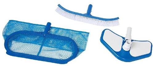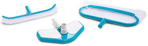 Met de Intex Deluxe Cleaning Kit houd je jouw zwembad gemakkelijk schoon en fris. Deze kit bevat alles wat je nodig hebt voor het onderhoud van je zwembad. Het pakket wordt geleverd met een handige stofzuiger, schepnet, borstel en telescoopsteel. Zo kun je eenvoudig vuil en bladeren uit het water verwijderen en de wanden en bodem van het zwembad reinigen.