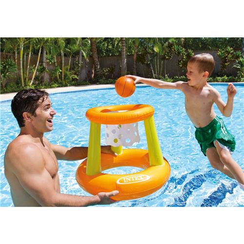 Met de Intex Floating Hoops kunnen kinderen vanaf 3 jaar genieten van eindeloos speelplezier in het water. Deze drijvende basketbalhoepel zorgt voor urenlang vermaak in het zwembad of de zee. De set wordt geleverd met een opblaasbare bal, waardoor kinderen direct aan de slag kunnen met hun basketbalvaardigheden. De Floating Hoops stimuleert actief spel en verbetert de hand-oog coördinatie van jonge kinderen, terwijl ze plezier hebben in het water.