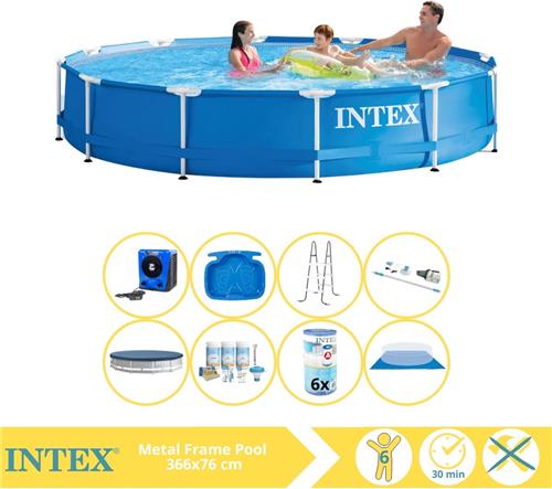 Haal de ultieme zomerervaring in huis met het Intex Metal Frame Zwembad! Dit opzetzwembad van 366x76 cm biedt plaats aan 6 personen en heeft een capaciteit van 6503 liter, waardoor het ideaal is voor families. Met het meegeleverde afdekzeil, onderhoudspakket, filter, grondzeil, stofzuiger, trap, voetenbad en warmtepomp heb je alles wat je nodig hebt voor eindeloos zwemplezier in je eigen tuin.