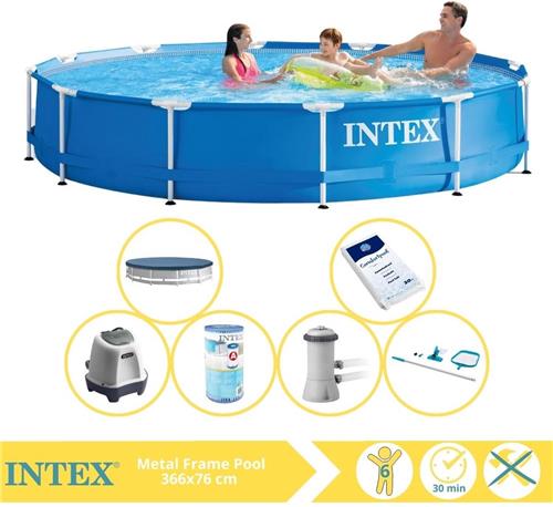 Intex Metal Frame Zwembad - Opzetzwembad - 366x76 cm - Inclusief Afdekzeil, Zwembadpomp, Filter, Onderhoudsset, Zoutsysteem en Zout