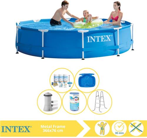 Intex Metal Frame Zwembad - Opzetzwembad - 366x76 cm - Inclusief Onderhoudspakket, Filter, Trap en Voetenbad