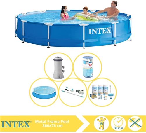 Intex Metal Frame Zwembad - Opzetzwembad - 366x76 cm - Inclusief Solarzeil, Onderhoudspakket, Filter en Stofzuiger