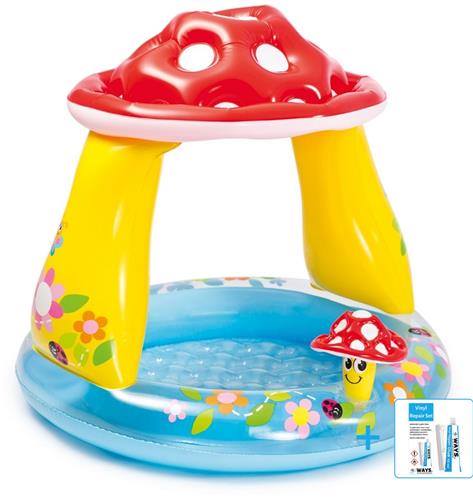Breng plezier en verfrissing naar je tuin met het Intex Mushroom Baby Pool! Dit vrolijke opblaaszwembad heeft een diameter van 102 cm en is perfect voor kinderen van 1 tot 3 jaar. Met een schattig paddenstoel zonnescherm biedt het niet alleen een veilige speelomgeving, maar ook de nodige schaduw voor een geweldige tijd in de zomer.