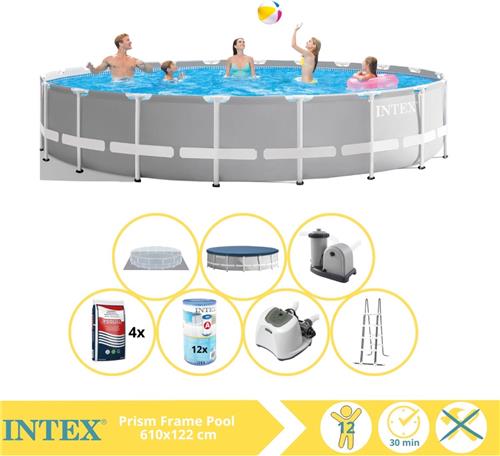 Intex Prism Frame Zwembad - Opzetzwembad - 610x122 cm - Inclusief Filter, Zoutsysteem en Zout
