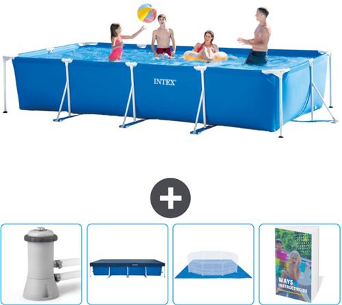 Intex Rechthoekig Frame Zwembad - 450 x 220 x 84 cm - Blauw - Inclusief Pomp Afdekzeil - Grondzeil - Zwembadgids