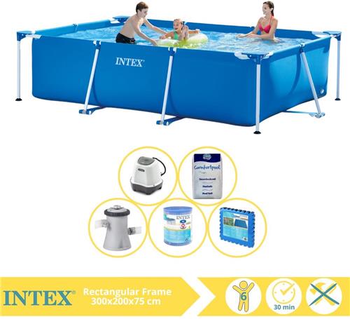 Intex Rectangular Frame Zwembad - Opzetzwembad - 300x200x75 cm - Inclusief Zwembadpomp, Filter, Zoutsysteem, Zout en Zwembadtegels