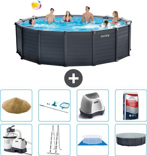 Intex Rond Graphite Gray Panel Zwembad - 478 x 124 cm - Inclusief Pomp - Ladder - Grondzeil - Afdekzeil Filterzand - Schoonmaakset - Zoutwatersysteem - Zwembadzout